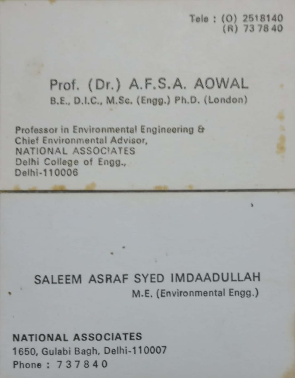 Professor in Environmental Engg. Delhi College Of Engg, Delhi